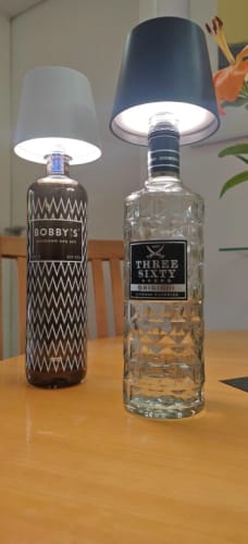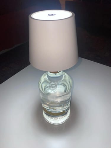 Odio las lámparas, pero esta me parece una idea genial. Es fácil de llevar, no tiene cables sueltos, tiene varios niveles y estilos de luz, y además queda como una buena decoración. Yo las uso en botellas de tragos antiguos para decorar mi casa. Me encanta esta lámpara.